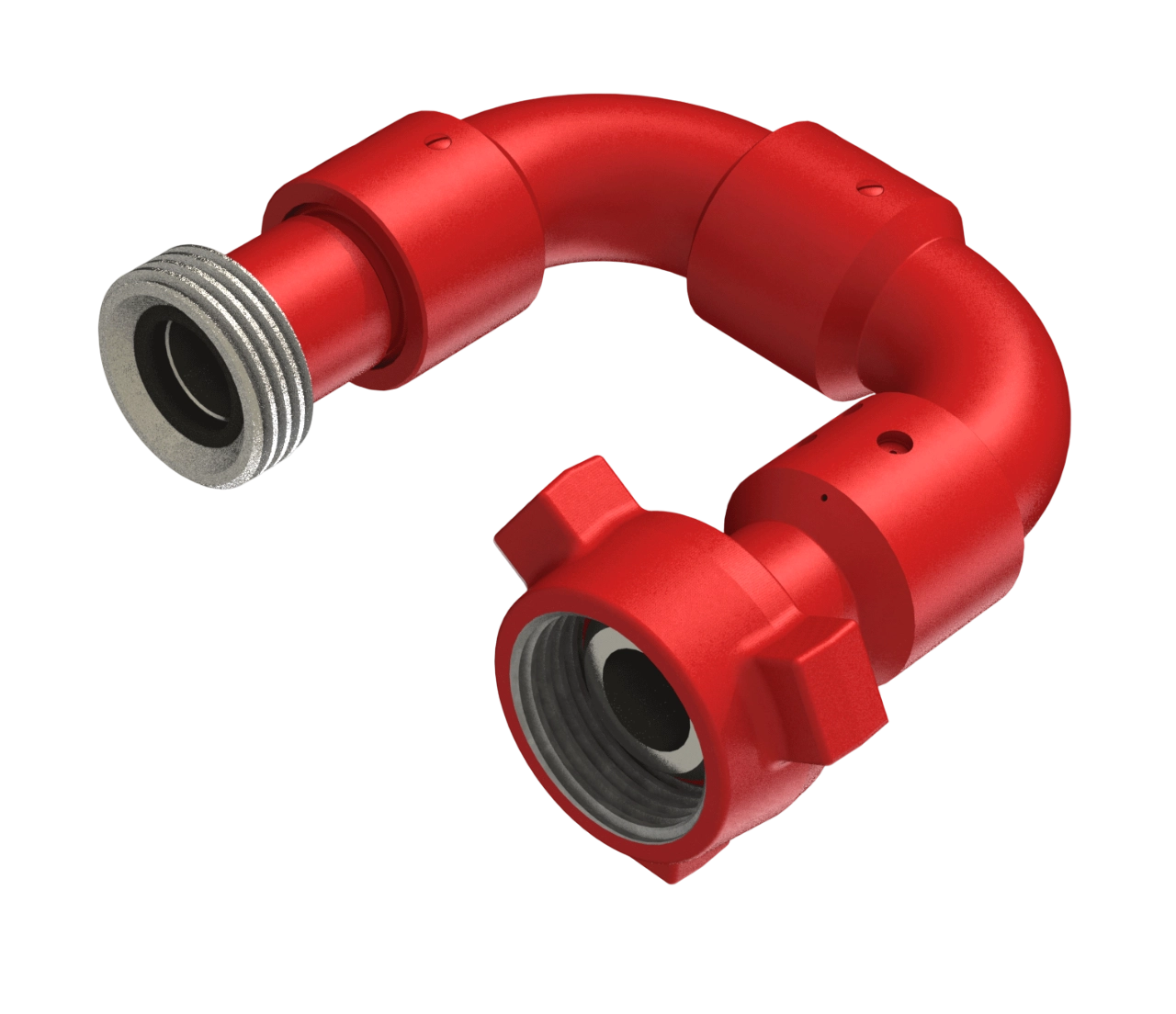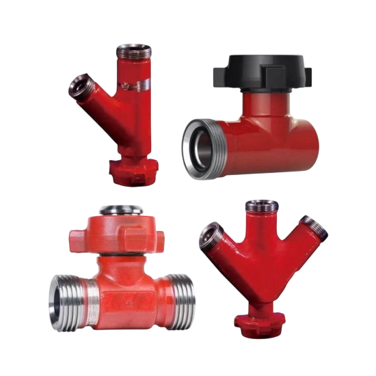The accesories, that may be seen in a Xmas tree, are also intermediate blocks. or in the specifics situacion of the fracking trucks are in the oulet port, where is easy to identity because you will be able to see a metal rigid hose call it Chicksan, this are steel sections where the concions between them are treaded and are joint with similar accesories, so it could have some kind of snake shape according each need